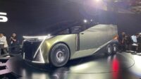 Atap miringnya berakhir pada spoiler model ducktail dengan dua sirip, serta diffuser besar dengan lampu rem ala mobil F1. Sentuhan unik lainnya termasuk penutup aero berwarna emas di roda, kontras dengan pelek hitam dan kaliper merah.